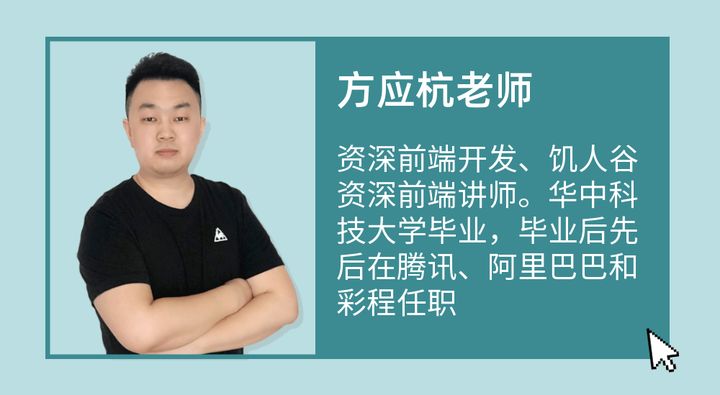 方方老师,资深前端开发、饥人谷资深前端讲师。华中科技大学毕业,毕业后先后在腾讯、阿里巴巴和彩程任职。